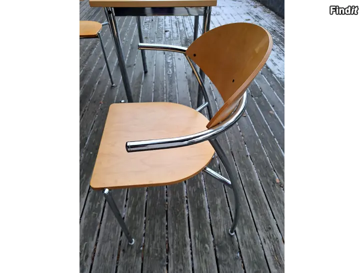 Pöytä 60x80, korkeus 73cm, koivuviilu/kromi, hyväkuntoinen, tukeva