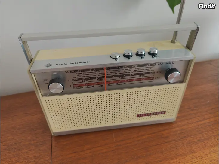 Kohtalaisessa kunnossa oleva Telefunken Banjo automatic 101 -matkaradio. Ehjä, antennin liitäntä rikki, ei pysy suorana ylhäällä, radion päällä jotain kosmeettisia jälkiä. Näkyy kuvassa Patterikotelo siisti ja kansi tallella. Ääni kuuluu ja soi kauniisti.