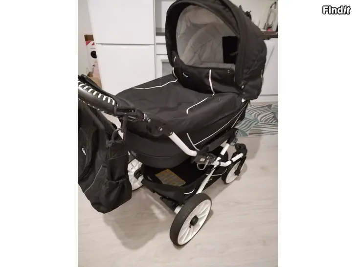 Duo Edgen runko puhkeamattomilla ecco pyörillä, iso kori alla, polar aisa, jarrut, kääntyvät renkaat jotka saa lukittua menemään suoraan