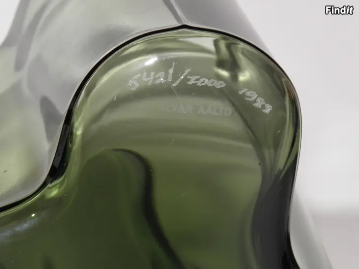 kuvien mukainen, vanhempaa tuotantoa, ehjä, hyväkuntoinen, kork. 12 cm, sign ALVAL AALTO + numeroitu + 1983 pohjassa, harvinainen vihreä.