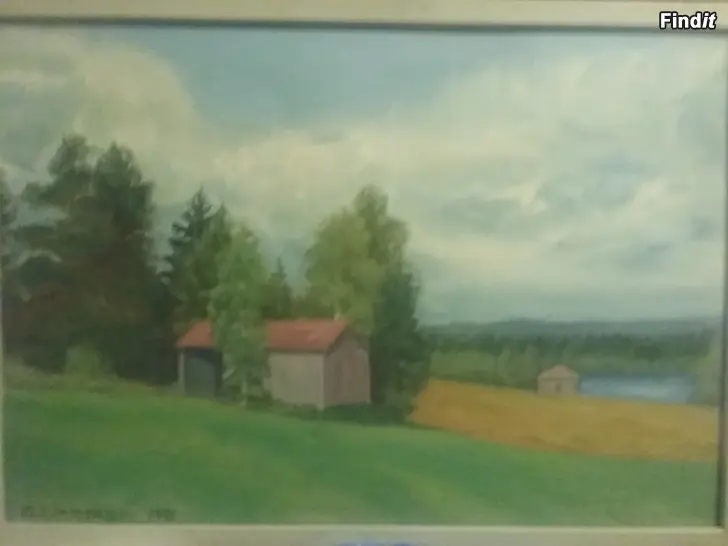 Kankaalle maalattu kivan kesäinen öljyvärimaalaus V. 1981