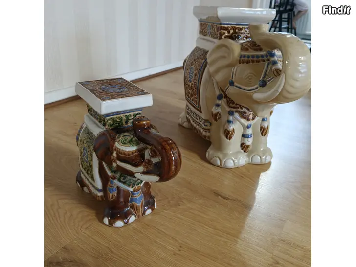 Myydään kaksi kaunista koristenorsua. Ollut itsellä kukkaruukkujen alla. Isompi 43cm ja pienempi 27cm korkeat. Yhteensä 35 euroa. Nouto Hietalahdesta.