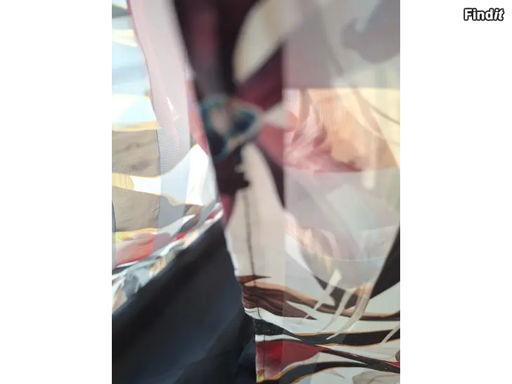 Puolihame juhliin ja pikkujouluihin. Päällikangas on ohut ja läpikuultava, alushame musta. Vyötäröllä kuminauha. Monivärinen. Mahdollistaa erilaiset yläosat. Koko S-M