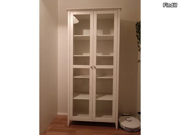 Hyväkuntoinen Laulumaa-vitriini. Kork. 190cm, lev. 81cm, syv. 35cm.