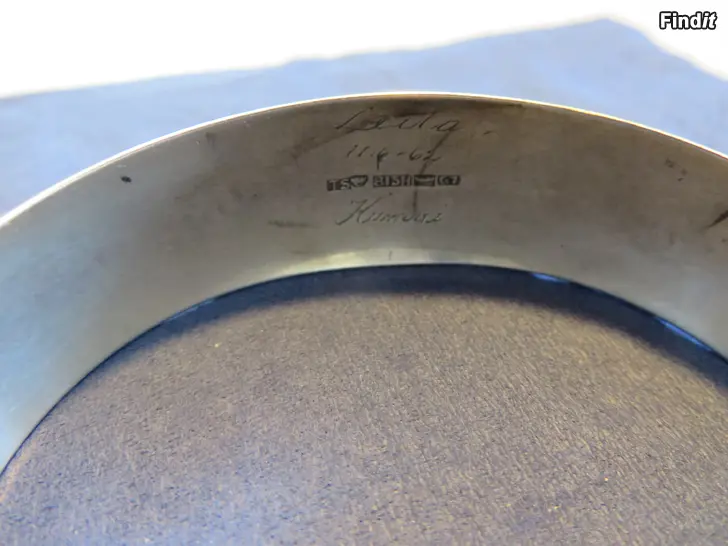 Hopeinen, kotimainen rannerengas 1960-luku Korukka Oy / Toivo Salmi, sisäpuolella