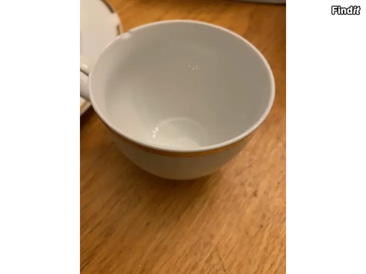 12 hengen astiasto syvälautanen 12, matala lautanen 12, leipälautanen 12, kahvikupit + lautanen 12, tarjoilulautanen 1, kermakko ja sokerikko, yhdestä lautasesta ja yhdestä kupista pieni pala pois näkyy kuvassa 55 euroa