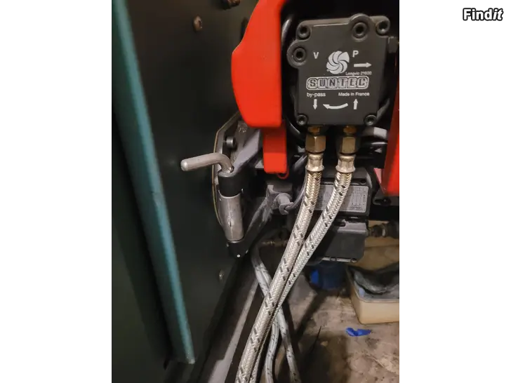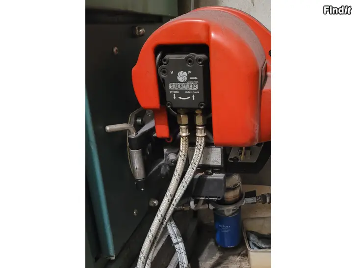 Tänään 20.11 suoraan käytöstä poistettu oilonin poltin, oilonin suodatinjärjestelmä sekä 3kpl uusia PA-letkuja. Kattilan kyljessä oli huoltotarra 10/2024. Kiinnityslaippa mukaan toki.