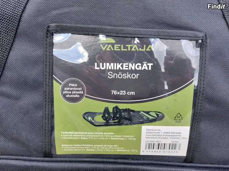 Myydään muutaman kerran käytetyt Vaeltaja lumikengät. Mukaan kätevä kantopussi. Hinta 40€.