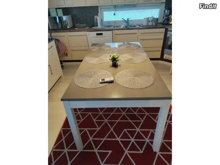 Siisti kuntoinen ruokapöytä mihin teetetty karkaistu lasikansi jälkikäteen.