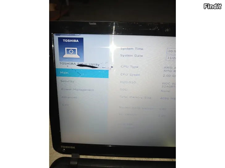Toshiban näytössä musta kohta näkyy kuvassa sekä kuvissa tiedot