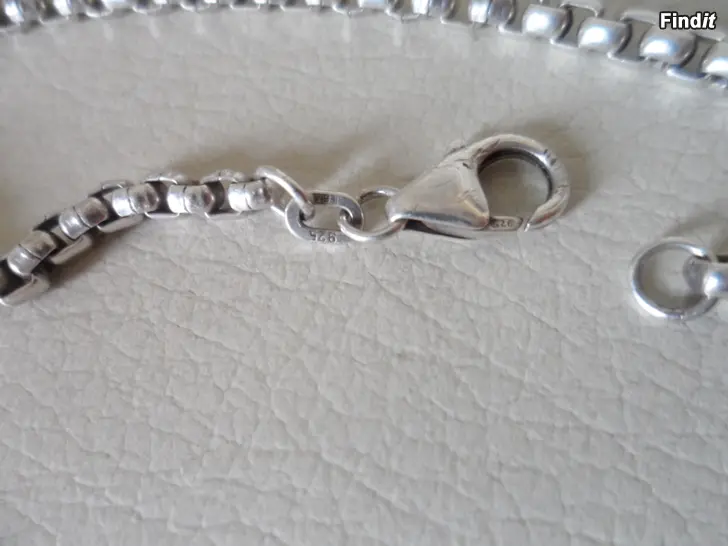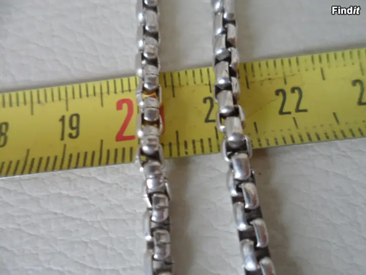 Hopeinen rannekoru pituus 20,8cm, leveys n.3,5-4mm, paksuus 3,5-4mm , paino 10g