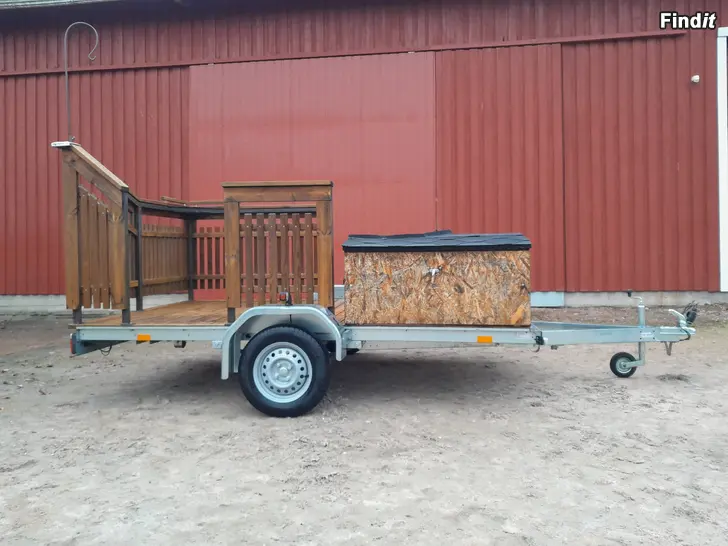 Peräkärryt puulavalla, aidoilla ja tarvikelaatikolla