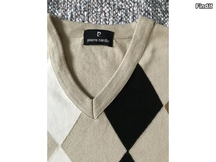 Todella vähänkäytetty, V-aukkoinen, salmiakkikuvioinen pusero merkkiä Pierre Cardin, tuottaja Top-Knit oy, Finland. Koko M iso koko, materiaali 100 puuvilla.
