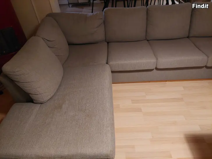 Annetaan pois remontin alta iso, vaaleanharmaa kulmasohva. Mitat 292 cm × 197 cm. Ehjä, mutta tahroja on. Koiratalous. Vain nouto.