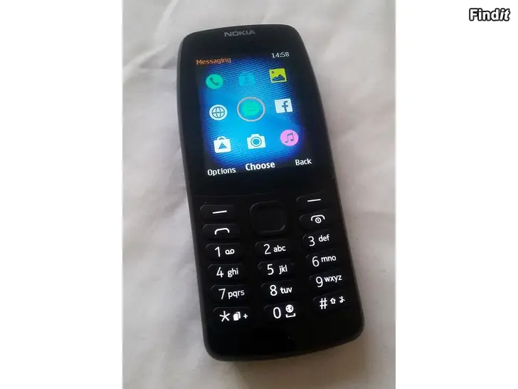 Nokia 210 Dual-SIM -peruspuhelin. Musta. Julkaisuvuosi: 2019. Puhelin tulee alkuperäisessä pakkauksessaan ja kaikkien alkuperäisten tarvikkeiden kanssa. Osa tarvikkeista on täysin uusia omissa muovipusseissaan - nappikuulokkeet - ja osa käyttämättömiä -laturi. Käytin itse älypuhelimeni laturia puhelimen lataamiseen. Kaikissa tarvikkeissa on alkuperäinen Nokian logo. Puhelinta on käytetty vain satunnaisesti pidemmillä reissuilla esimerkiksi sähköttömälle mökille. Siksi irrotettava akku kestää edelleen useita päiviä ilman latausta, erityisesti valmiustilassa.