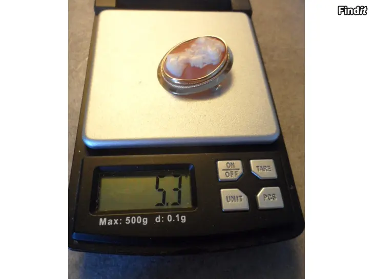 Upea camee kultakoru! N. 32 x 26mm, paino 5,3g. 14 karaatin kultaa.