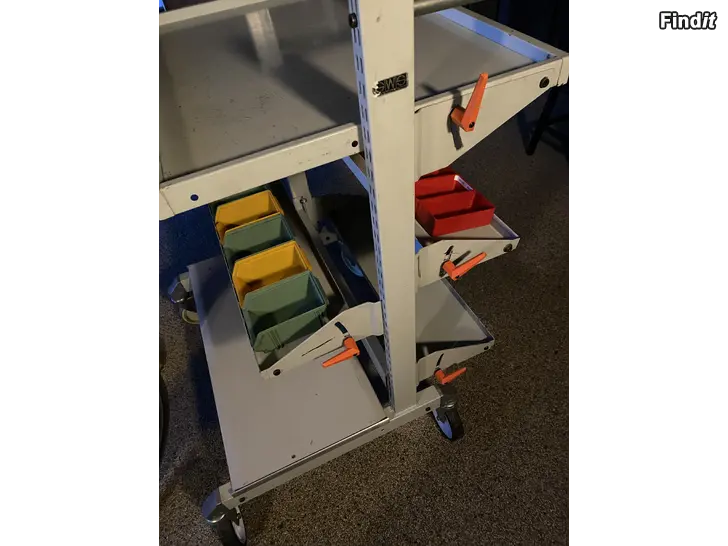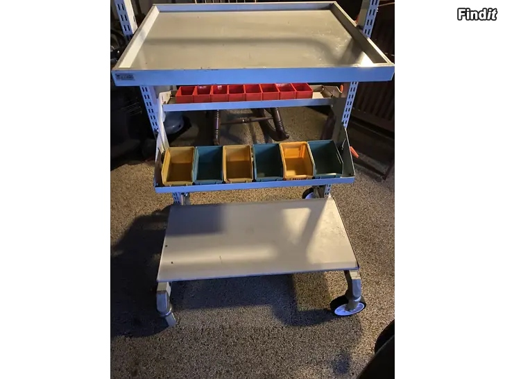 GWS työkaluvaunu, säädettävät ja kallistettavat hyllytasot, isot pyörät helpottaa siirtelyä, priimakunnossa, lokerot kuuluu mukaan, tämä vaunu enää jälellä