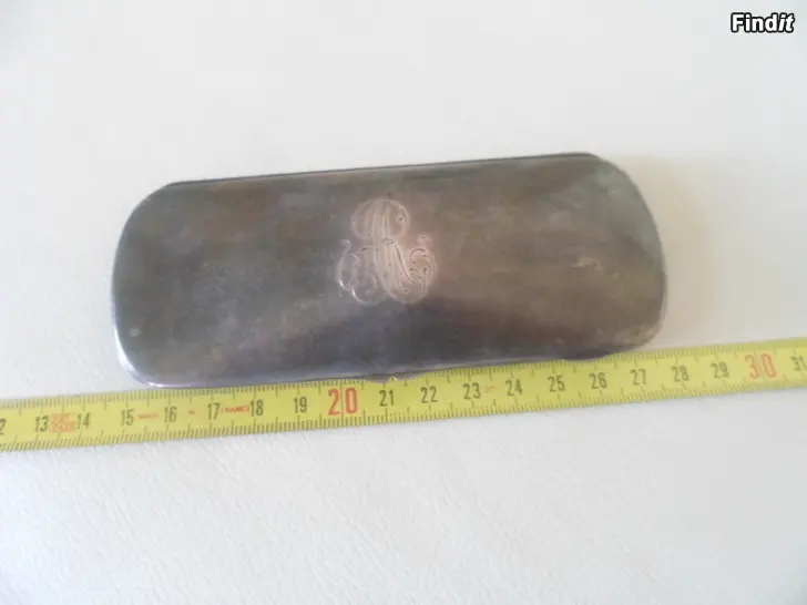 Hopeinen kotelo, ulkomitat 13 x 5,5cm