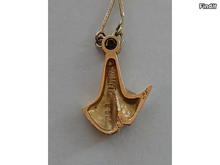 Lapponia Hermione , Kaulakoru 18K timantilla.0,02. Paino 4,9 g. Ketjun pituus n.40 cm ja riipus n.18 cm. Björn Weckström nimikirjaimet riipuksessa. Varmaan 1982 tehtyjä.
