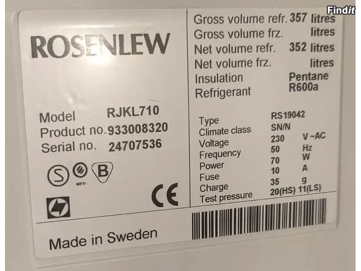 Toimiva ehjä ROSENLEW Jääkaappi / Viileäkaappi: