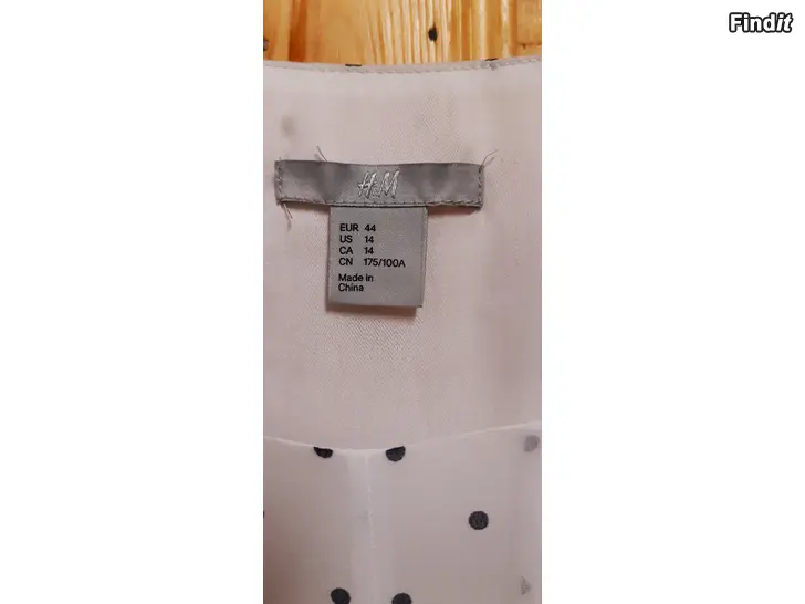 Mekko vaalea musta pilkullinen yläosa, kotelomainen sininen alaosa koko 44