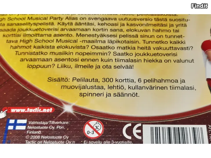 Sisältö: pelilauta, 300 korttia avaamattomat pakkaukset, 6 pelihahmoa ja muovi jalustaa, lehtiö, kullanvärinen tiimalasi, spinneri ja säännöt.