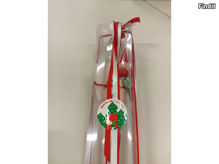 Aarikka tonttulusikka, uusi paketissaan oleva. Lusikan pituus noin 30cm.