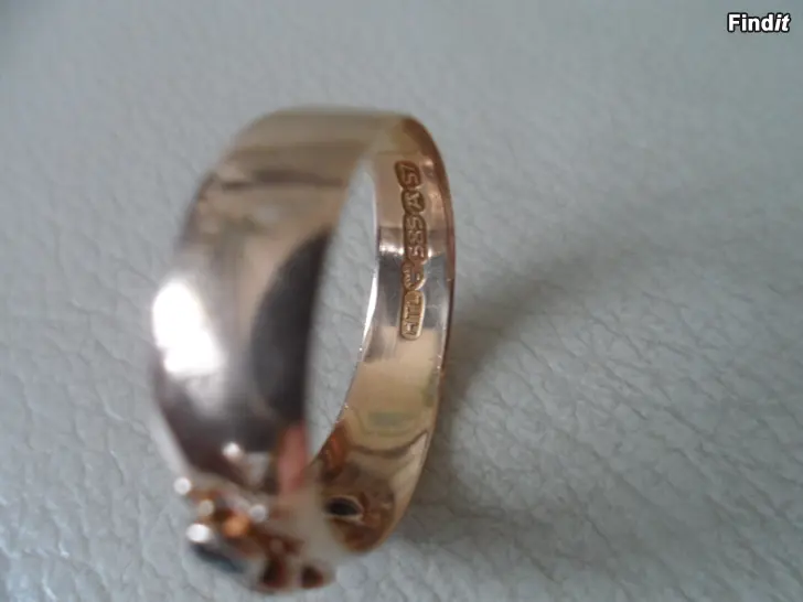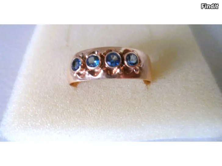 14 karaatin kultaa, leveys edestä 7mm, v.siniset kivet