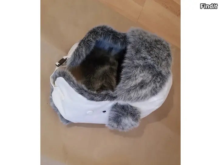 Valkoinen naisten talvilakki karvareunoilla koko 57cm -hinta 5e
