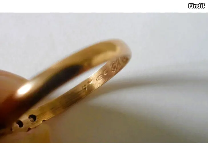 Leveys edestä 3 mm, paino 1,8g, materiaali: kulta 14 ka, 4 leimaa, kultaleima 585