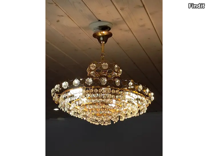 Kaappien siivous. Kuvat 1 ja 2 - erittäin laadukas kristallikruunu jossa kaikki kristallit tallella ja kaikki lamput toimii. Läpimitta 45 cm ja ketjun pituus 78 cm. Tämän hinta 80 €. Kuvat 3 ja 4. Hiukan pienempi kruunu josta puuttuu muutama kristalli mutta kaikki lamput toimii. Tämän hinta 50 €. Läpimitta 40 cm ja ketjun pituus 30 cm.