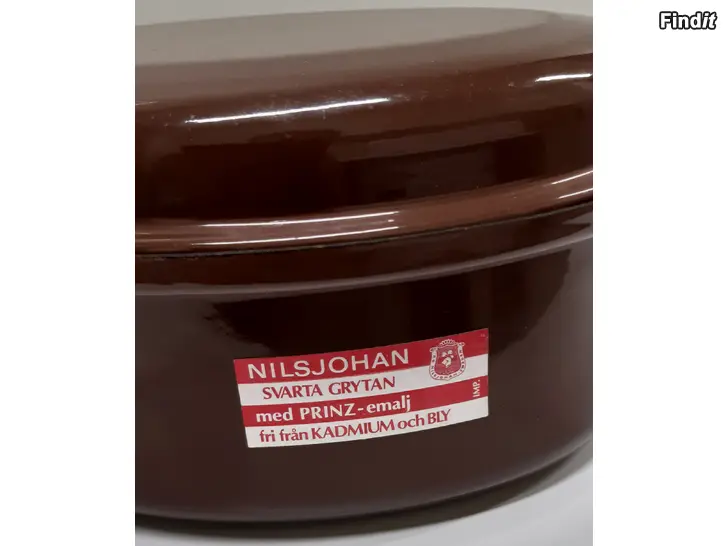 Reilun kokoinen NilsJohan emalipata Svarta grytan. Tilavuus noin 2,5 litraa. Ei käytetty. Säilytyksessä tullutta pientä kulumaa kannessa ja pohjassa.