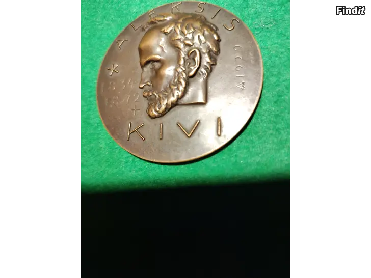 Wäinö Aaltosen v. 1929 muotoilema pronssinen ja kohokuvioinen, erittäin harvinainen Aleksis Kiven, 1834-1872, muistomitali, jota Kustannusosakeyhtiö Otava tilasi hopeisena 75 kpl ja pronssisena 500 kpl:tta.
