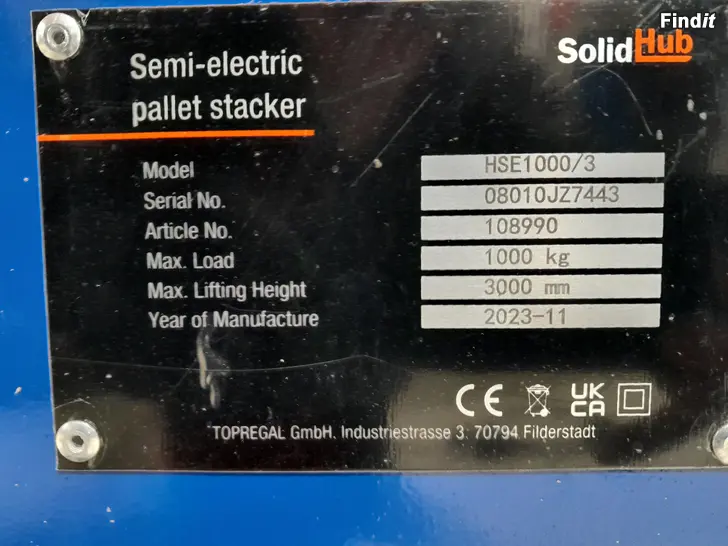 Konkurssipesä myy hyvin vähän käytetty SolidHub HSE1000/3 pinoamistrukin, nostokorkeus 3m. Hp. 1150€. Tarjotakin voi yrittää.