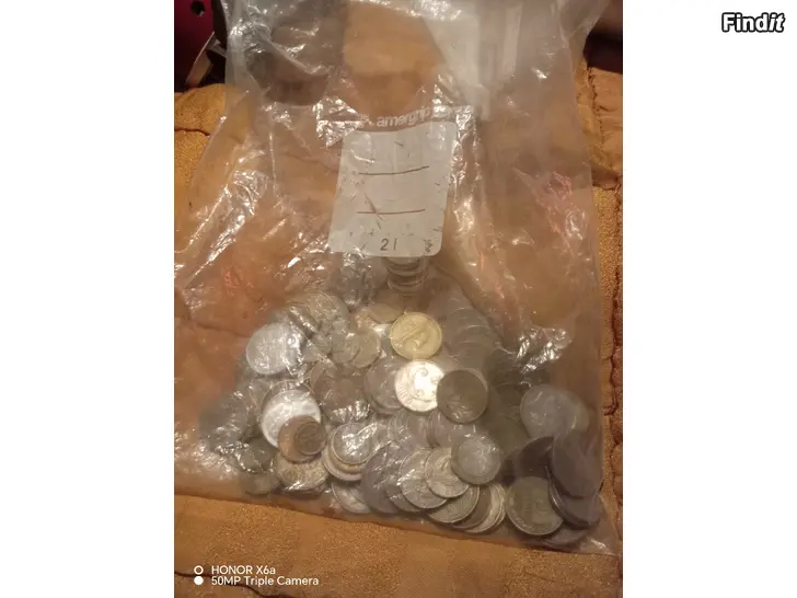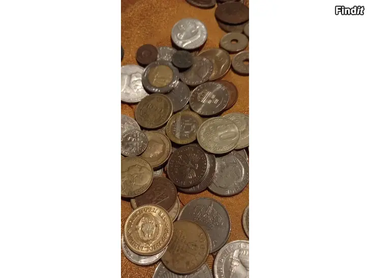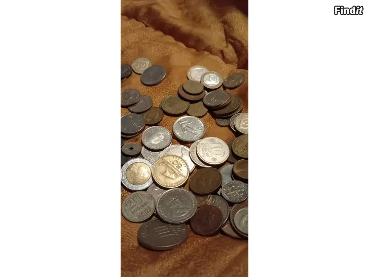 Isohko pussillinen kolikoita. Eri maista, eri ikäisiä. Iso määrä erilaisia kolikoita. Nämä käyvät myös koru askarteluun. Seassa voi olla arvokkaitakin.?!