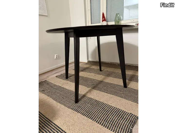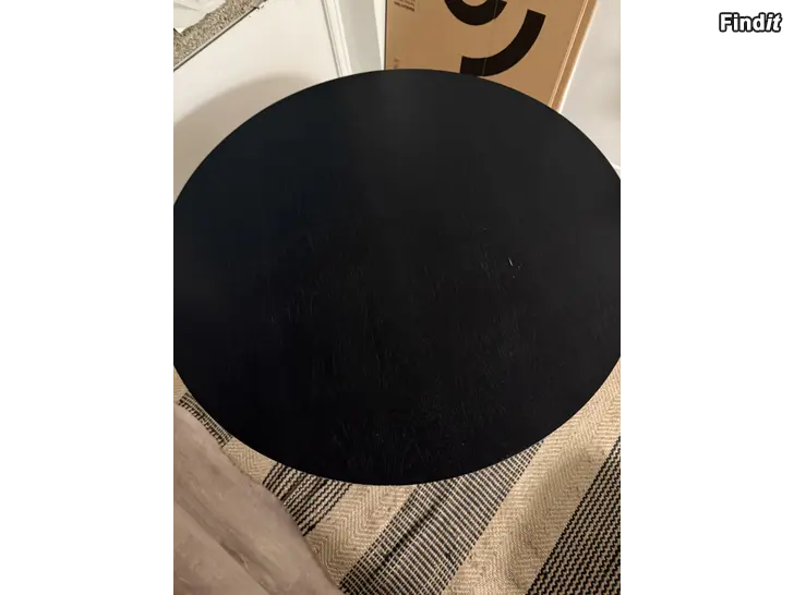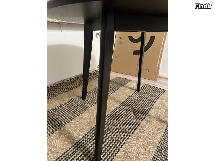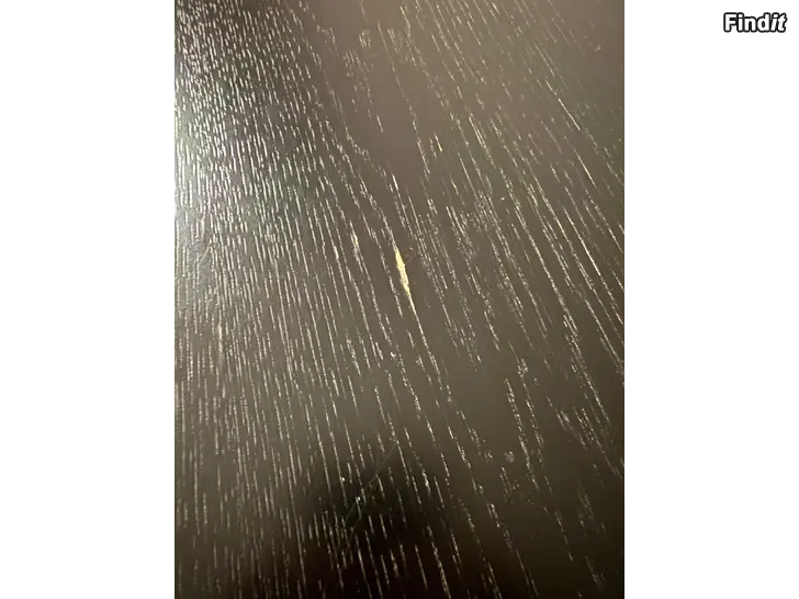 Säljes svart köksbord. Köksbordet är i okej skick. En skråma på bordsytan och några mindre hack i ett bordsben.
