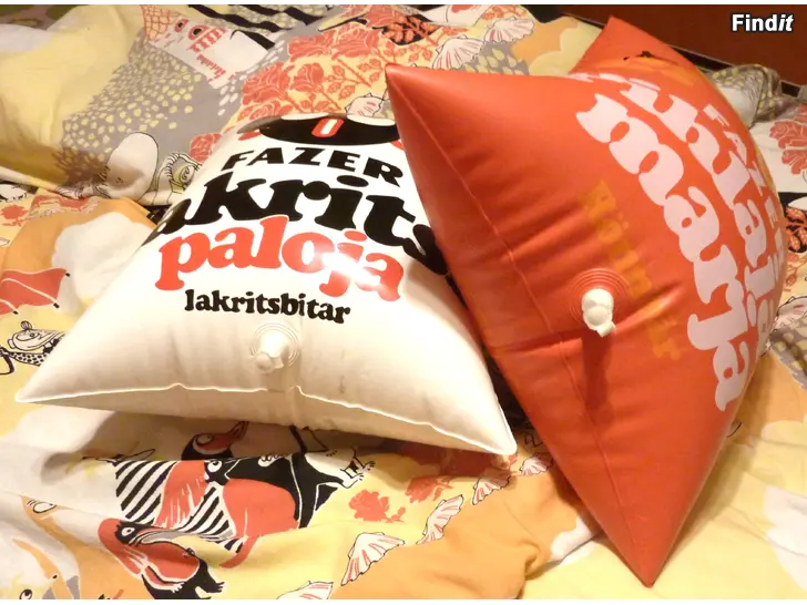 Vanhat Fazerin puhallettavat mainostyyynyt