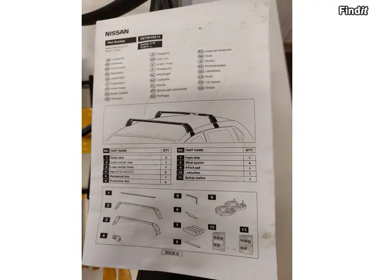 Nissanin alkuperäiset lukittavat, alumiiniprofiiliset T-uralla jonka ansiosta löytyy eri kiinnitys vaihtoehtoja esim, Boksit, pyörätelineet, lumilaudat ym.ym