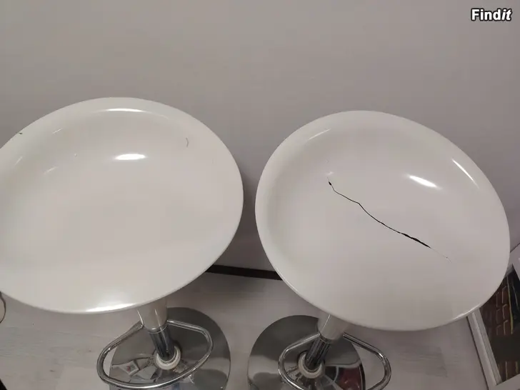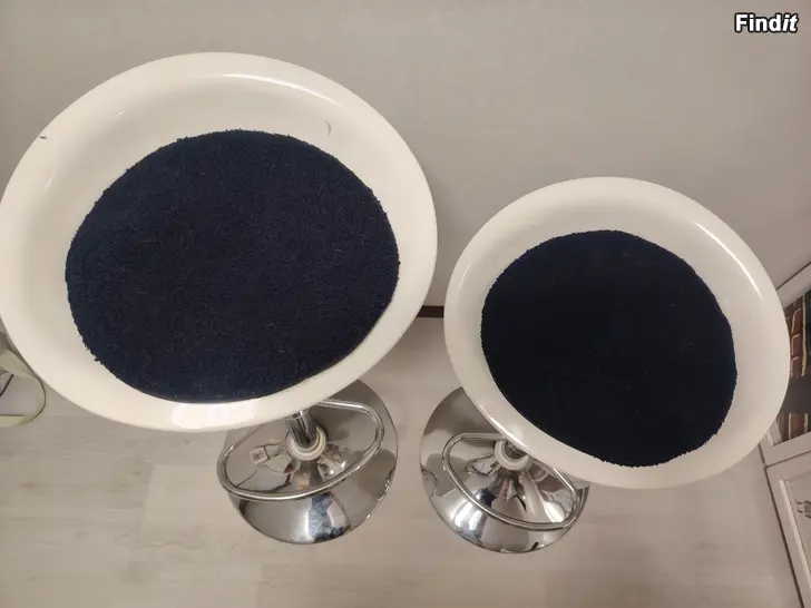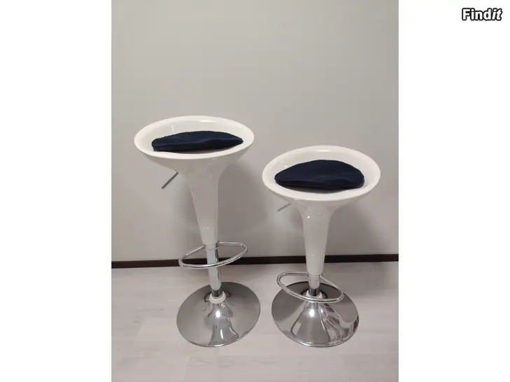 Myydään kaksi baarituolia kaasulla säädettävällä korkeussäädöllä.Yhdessä tuolissa on halkeama, mutta se ei vaikuta mekanismin toimintaan.Tyynyt mukaan. Yhdessä 55€