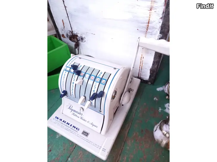 Paymaster Ribbon Writer & Signer, mekaaninen sekinkirjoitin. Painava metallinen esine.. Hieno sisustuselementti vanhojen aarteiden ystäville.