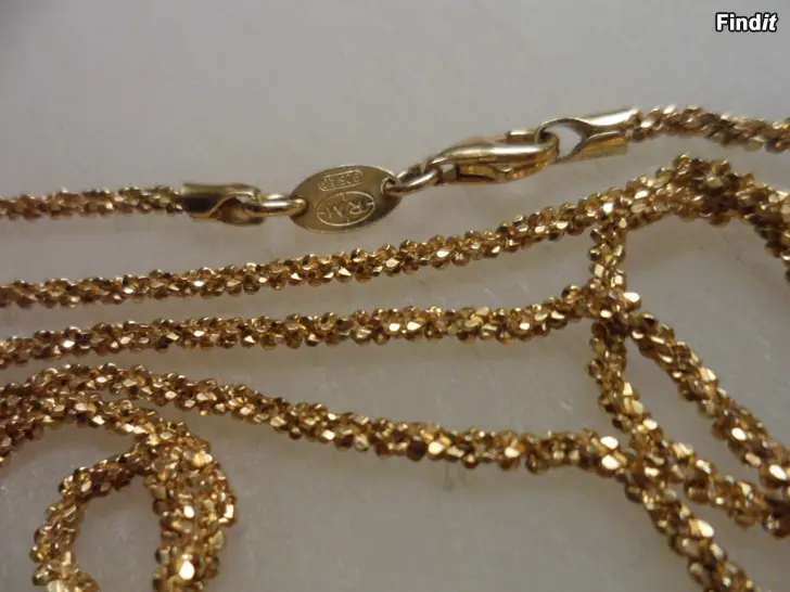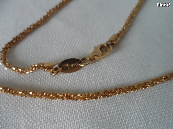 Erikoinen kaulaketju kullattua hopeaa, pituus 80cm, paino 11,4g. Paljon leimoja, 925, Italy,....