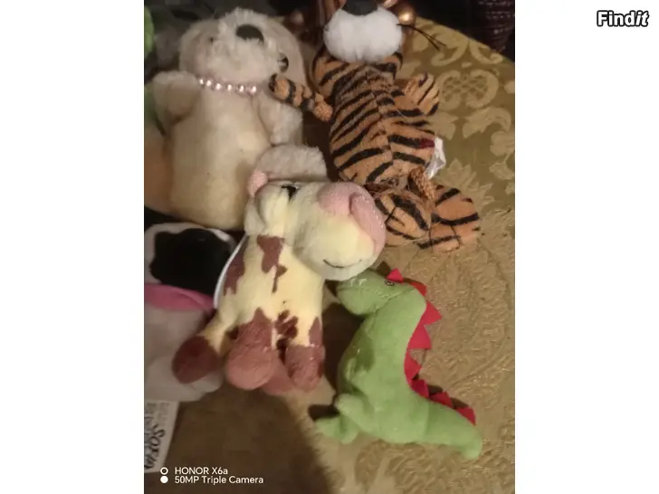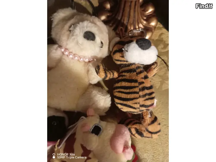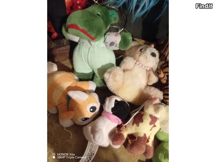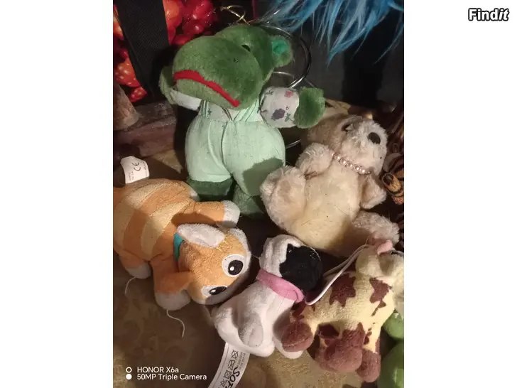 8kpl söpöjä pikkupehmoja. Sininen karvaturriainen, vihreä hippo, nalle helmikorulla, tiikeriavaimenperä, pikku pikku dino, lehmä, mopsi, raidallinen kisuliini.