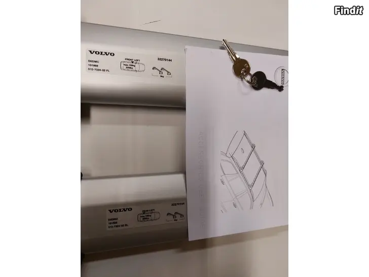 Volvon alkuperäiset lukittavat 2 kpl avaimia sekä asennusohjeet tulostetut