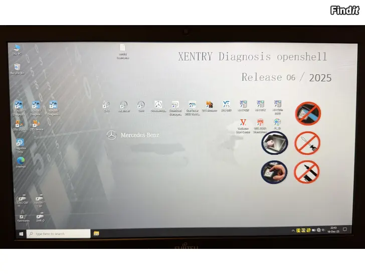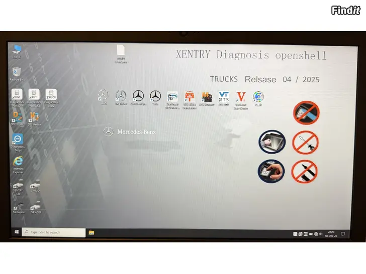 Koneessa asennettuna vuoden 2025 Xentry offline ohjelmistot henkilö-ja Pakettiautoille, kuorma-autoille ja linja-autoille kuvissa näkyy muita asennettuja ohjelmistoja