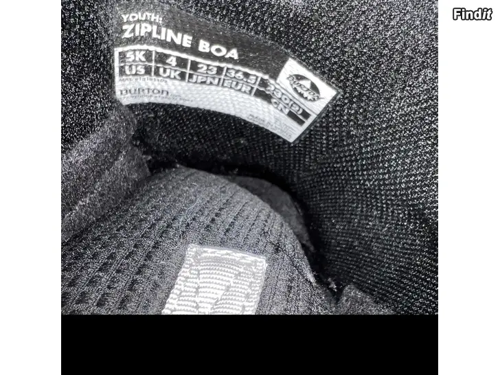 Burton Zipline Boa storlek 5K / 36,5 men är mindre än normalt så motsvarar 35,5. I fint skick och enkla att spänna för barn tack vare boasystemet. Finns i Kvevlax.