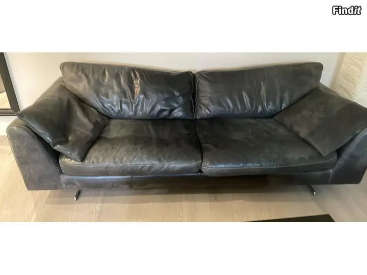 Iso nahkasohva myydään superedullisesti. Asunto pitää tyhjentää ennen vuodenvaihto.