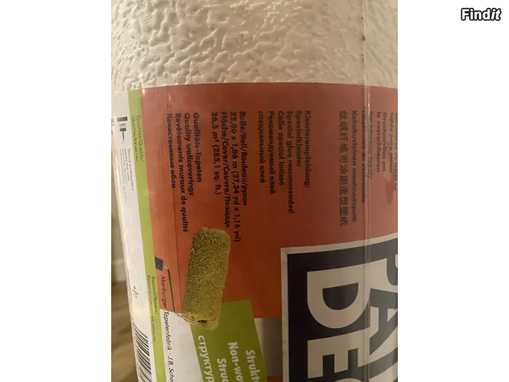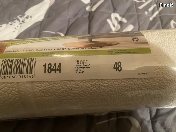 Målningsbara 1,06x5m 5,3 kvadratmeter 15€ per rulle finns olika mönster. Finns några lådor kvar