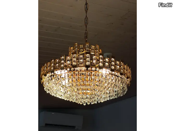 Myydään hieno kristallikruunu, läpimitta 43 cm ja korkeus 75 cm ketjun kanssa. Polttimot paikoillaan. Muutama kristalli puuttuu mutta kokonaisuutena tosi hieno kruunu. Varaan enintään 24 tuntia.