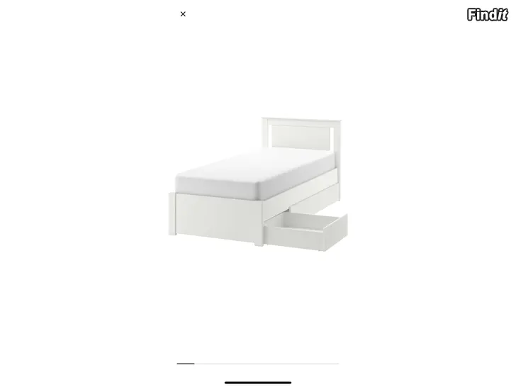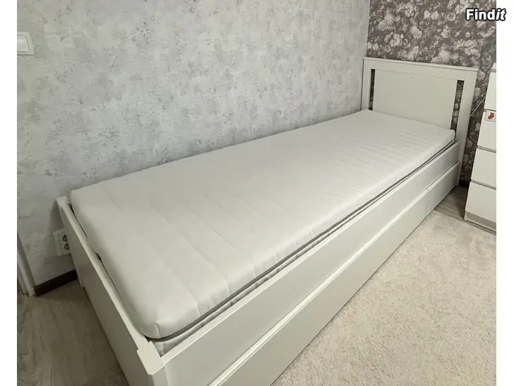 Sängynrunko + patja IKEA, jossa 2 laatikkoa, valkoinen, koko 90\200cm