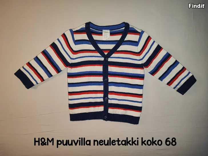 1 kpl H&M raidallinen puuvilla neuletakki koko 68,